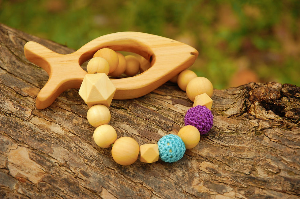 Fisk Biteleke med klipps - Tre & Bomull
