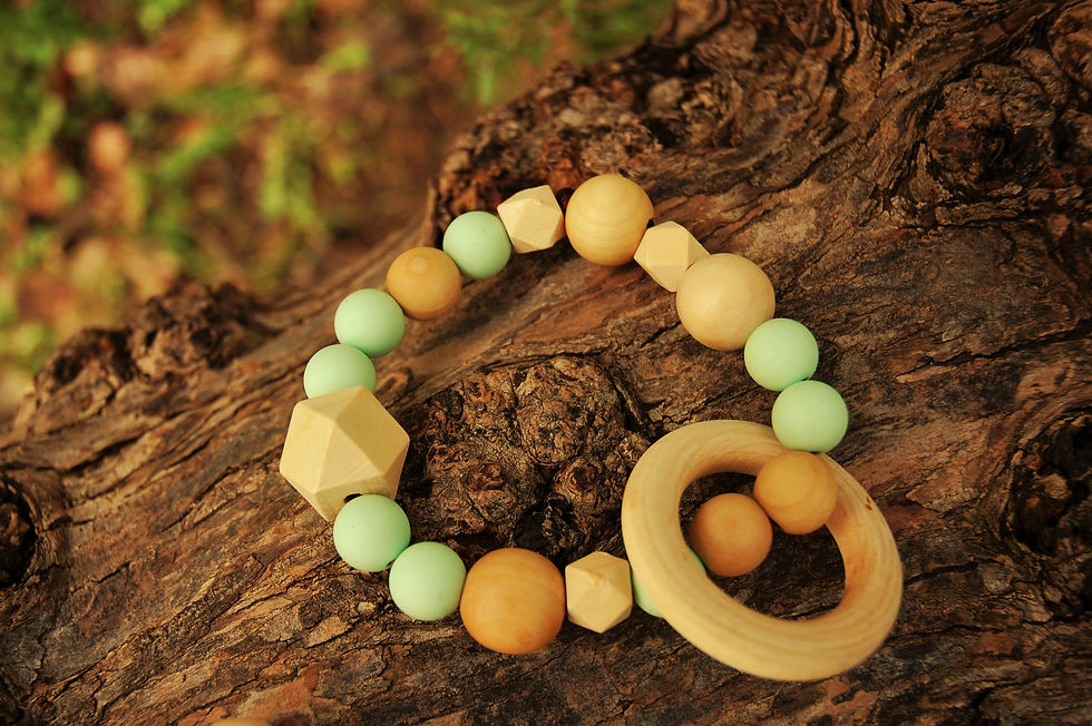 Biteleke med klipps - Silikon & Tre